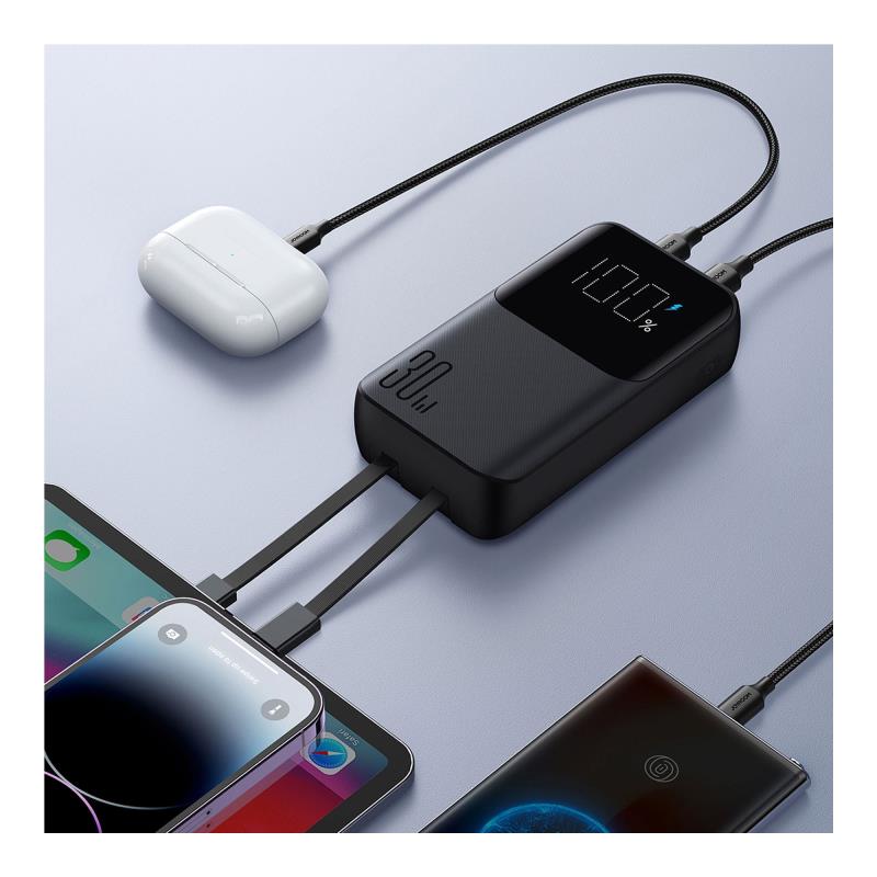 Το Joyroom JR-PBC06 είναι ένα φορητό power bank με χωρητικότητα 10.000mAh, που υποστηρίζει γρήγορη φόρτιση έως 30W. Διαθέτει δύο ενσωματωμένα καλώδια, USB-C και Lightning, προσφέροντας ευελιξία στη φόρτιση διαφόρων συσκευών χωρίς την ανάγκη επιπλέον καλωδίων. Επιπλέον, υποστηρίζει αμφίδρομη φόρτιση, επιτρέποντας τη φόρτιση τόσο του power bank όσο και των συνδεδεμένων συσκευών ταυτόχρονα. Με τέσσερις εισόδους και τέσσερις εξόδους, παρέχει πολλαπλές επιλογές σύνδεσης για διάφορες συσκευές.