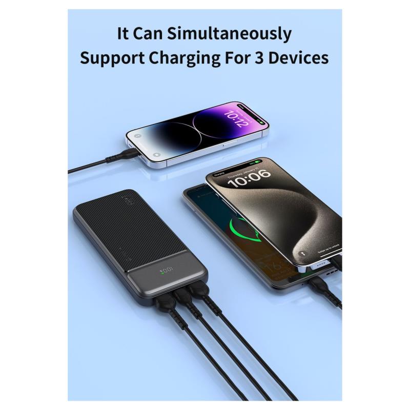 To powerbank της EP198 22.5W 10000mAh διαθέτει θύρες USB A (x2) και USB C. Με συμπαγές και ελαφρύ σχεδιασμό, μπορείτε να το έχετε παντού μαζί σας, ενώ το περίβλημά του είναι ανθεκτικό στις υψηλές θερμοκρασίες και τις πτώσεις. Είναι εγκεκριμένο για χρήση σε αεροπλάνο, ενώ διαθέτει και οθόνη ένδειξης του επιπέδου μπαταρίας, ώστε να γνωρίζετε πάντα το επίπεδό της. Επιπλέον, παρέχει προστασία από υπερθέρμανση, υπερτροφοδότηση και βραχυκύκλωμα.