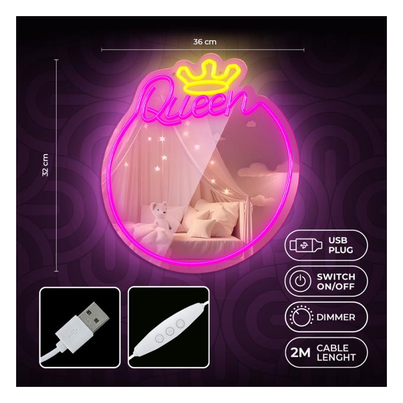 Neon LED Forever Light Καθρέπτης FMNE04 QUEEN Λευκό-Ροζ