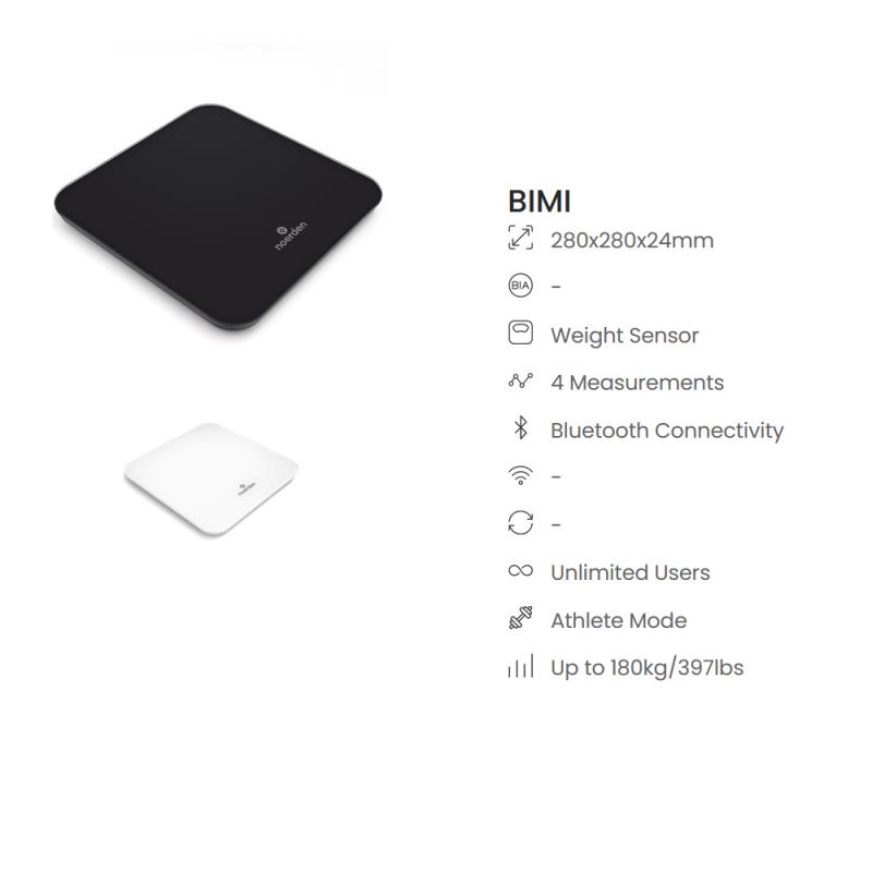Η BIMI της NOERDEN είναι μια έξυπνη ζυγαριά σώματος με σύνδεση Bluetooth για παρακολούθηση του σωματικού σας βάρους. Τώρα σε συνδυασμό με την εφαρμογή NOERDEN, η έξυπνη ζυγαριά BIMI παρακολουθεί το βάρος, το BMI, το BMR και το Body Score για μια άμεση επισκόπηση της συνολικής υγείας σας.
