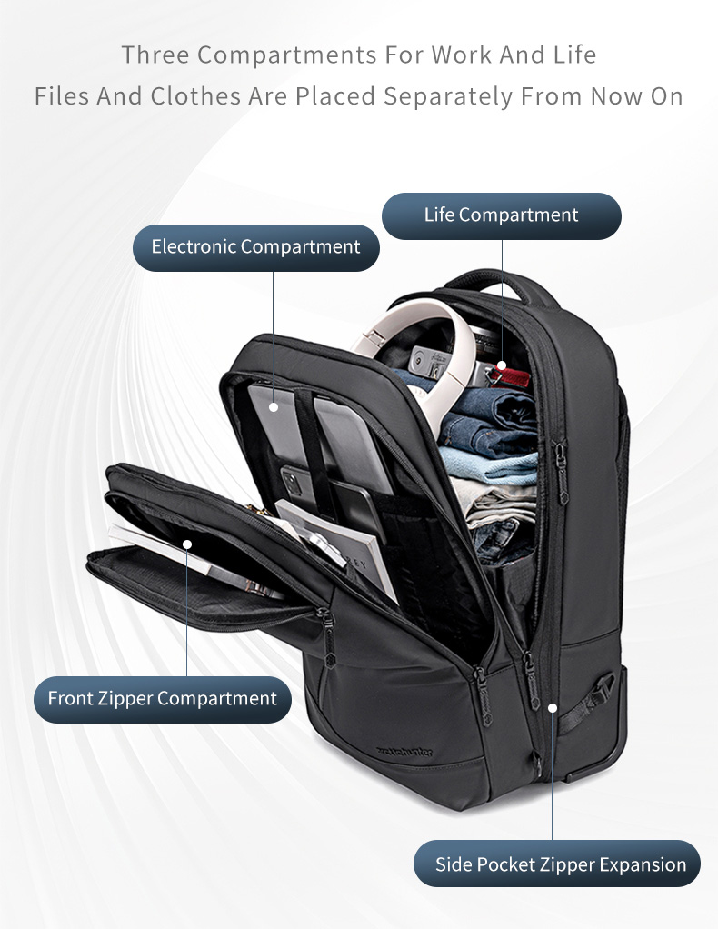 ARCTIC HUNTER τσάντα ταξιδίου LG00861 με θήκη laptop 15.6", τροχήλατη, 42L/54L, μαύρη