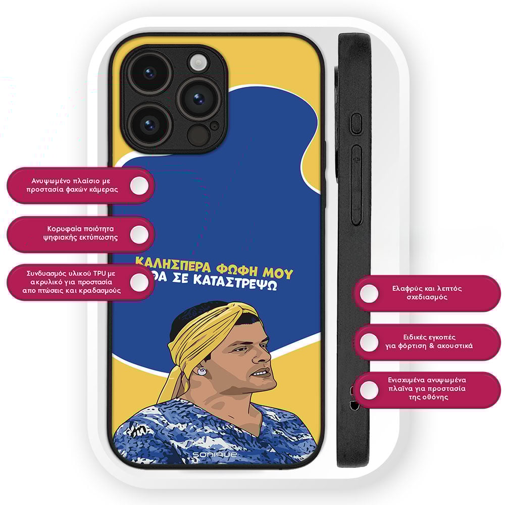 Η θήκη διαθέτει premium αισθητική, εφαρμόζει άψογα στη συσκευή και αναδεικνύει το κινητό χωρίς να προσθέτει όγκο. Είναι μια ιδανική επιλογή για όσους αγαπούν τις ελληνικές τηλεοπτικές «κλασικές στιγμές» και θέλουν μια θήκη που ξεχωρίζει πραγματικά.