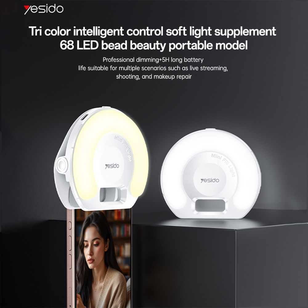 Το Yesido LED Selfie Ring Light Clip με 68 Lamp Beads προσφέρει ομοιόμορφο, φυσικό φωτισμό για φωτογραφίες, βίντεο και βιντεοκλήσεις. Με ρυθμιζόμενη θερμοκρασία χρώματος από 2700K έως 6500K και τρεις λειτουργίες φωτισμού (θερμό, ψυχρό και μικτό), εξασφαλίζει άριστο αποτέλεσμα σε κάθε συνθήκη. Η επαναφορτιζόμενη μπαταρία και ο σχεδιασμός με clip το καθιστούν ιδανικό για χρήση σε κινητά, tablets ή laptops.
