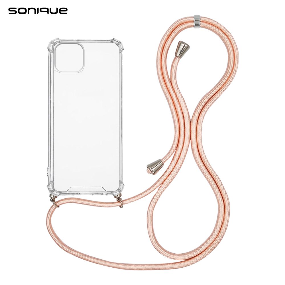 Θήκη Σιλικόνης με Κορδόνι Sonique Armor Clear Apple iPhone 14 Plus Ροζ Σατινέ