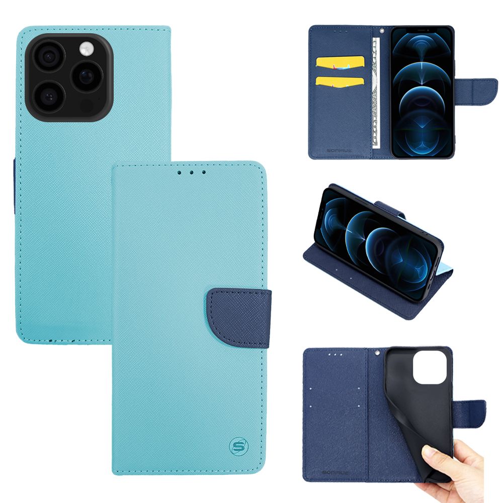 Θήκη Πορτοφόλι Sonique Trend Wallet Apple iPhone 16 Pro Σιέλ / Σκούρο Μπλε