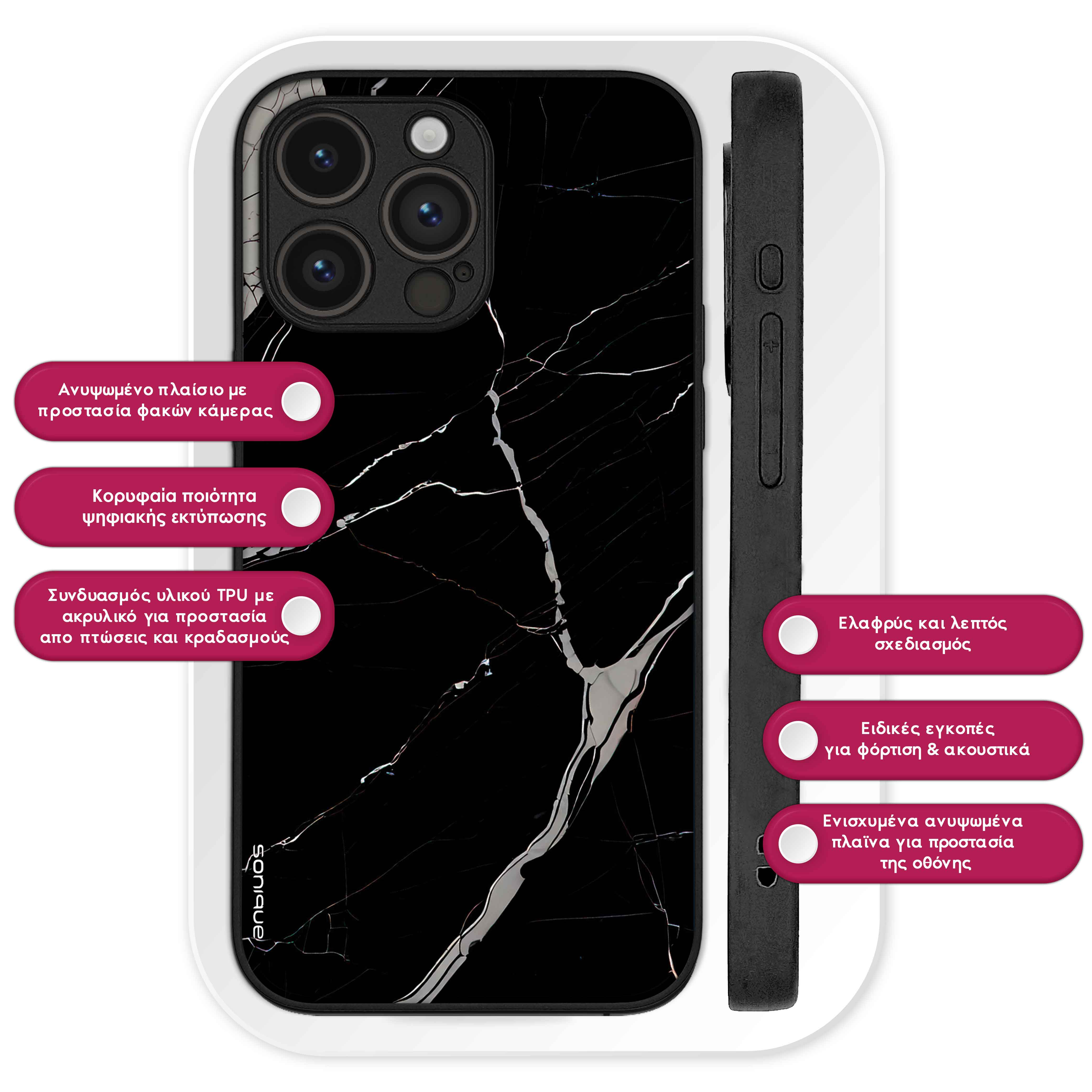 Η Θήκη Sonique Marble προσφέρει μοναδική κομψότητα και ασφάλεια για το κινητό σας. Το εκλεπτυσμένο σχέδιο μαρμάρου σε συνδυασμό με την ψηφιακή εκτύπωση υψηλής ποιότητας δημιουργεί ένα εντυπωσιακό αποτέλεσμα που δεν ξεθωριάζει με την πάροδο του χρόνου. Κατασκευασμένη από ανθεκτική σιλικόνη με ακρυλικό πίσω μέρος, η θήκη αυτή προστατεύει αποτελεσματικά τη συσκευή σας από καθημερινές φθορές και γρατσουνιές, ενώ παράλληλα διατηρεί την πολυτελή της εμφάνιση.Επιπλέον, η θήκη διαθέτει αντιολισθητικό κράτημα, προσφέροντας ασφαλή αίσθηση στο χέρι και μειώνοντας τον κίνδυνο ατυχημάτων από γλιστρήματα. Διατίθεται σε ποικιλία σχεδίων και χρωμάτων, για να βρείτε το ιδανικό στυλ που ταιριάζει με την προσωπικότητά σας. Απογειώστε την εμφάνιση και την προστασία του κινητού σας με την Sonique Marble, που συνδυάζει μοντέρνο design και πρακτικότητα.