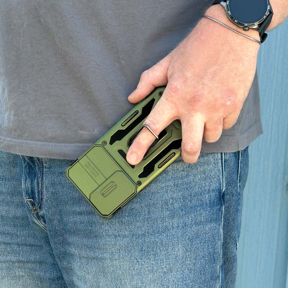Διαθέτει συρόμενο καπάκι κάμερας, που καλύπτει απόλυτα το module, προσφέροντας ασφάλεια και ιδιωτικότητα όταν δε χρησιμοποιείς την κάμερα. Παράλληλα, στο πίσω μέρος υπάρχει ενσωματωμένο δαχτυλίδι που σου επιτρέπει να κρατάς το κινητό πιο σταθερά ή να το χρησιμοποιείς σαν βάση στήριξης (stand) για προβολή χωρίς χέρια.