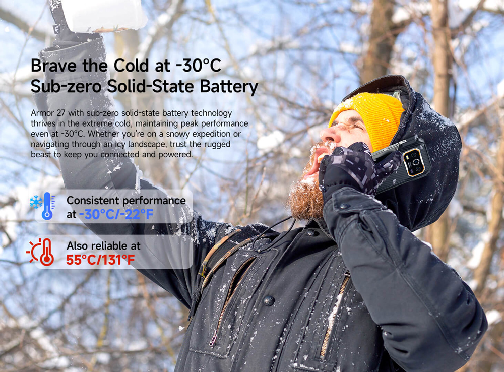 Με πιστοποίηση IP68/IP69K και πρότυπο MIL-STD-810H, το Armor 27 είναι σχεδιασμένο για να αντέχει σε ακραίες συνθήκες χρήσης και περιβάλλοντα.