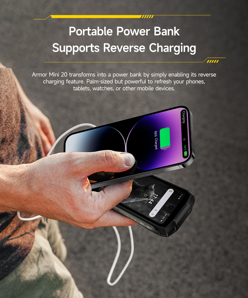 Με βολικό μέγεθος τσέπης, πιστοποίηση IP68/IP69K και πρότυπο MIL-STD-810H, το Armor Mini 20 είναι σχεδιασμένο για να αντέχει σε ακραίες συνθήκες χρήσης και περιβάλλοντα.
