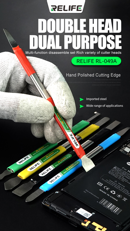 Σετ εργαλείων ανοίγματος με διπλή κεφαλή από την Relife, κατάλληλα για εργασίες επισκευής συσκευών όπως smartphone, tablet και laptop.