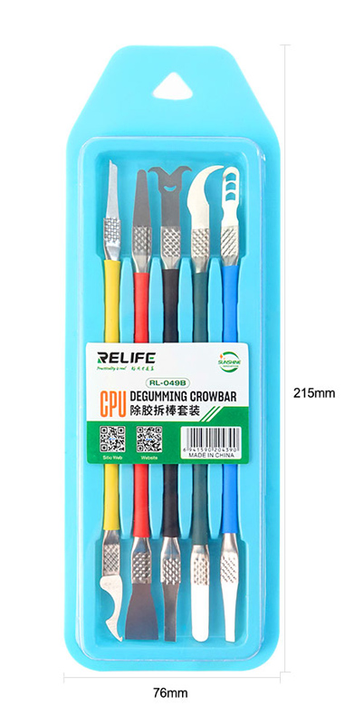 Σετ εργαλείων ανοίγματος με διπλή κεφαλή από την Relife, κατάλληλα για εργασίες όπως αφαίρεση CPU και chip σε επισκευές smartphone.
