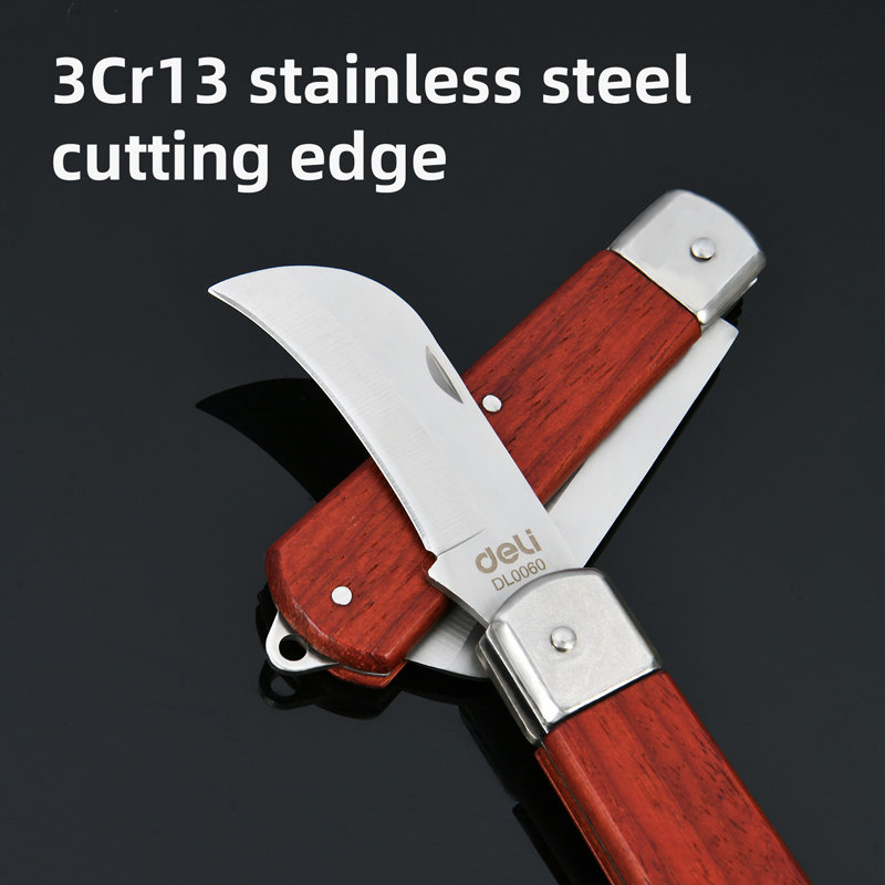 DELI σουγιάς DL0060 με ξύλινη λαβή, πτυσσόμενος, 200mm, καφέ