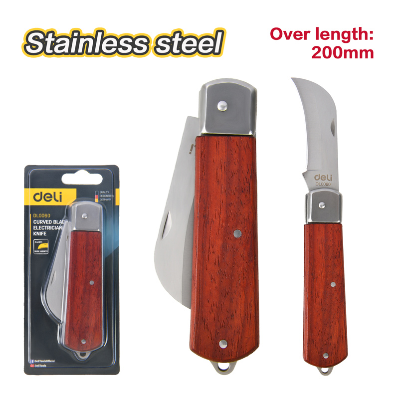 Σουγιάς της Deli με ανθεκτική λεπίδα από ανοξείδωτο ατσάλι και καλαίσθητη ξύλινη λαβή. Είναι ιδανικός για απογύμνωση καλωδίων αλλά και για γενική χρήση.