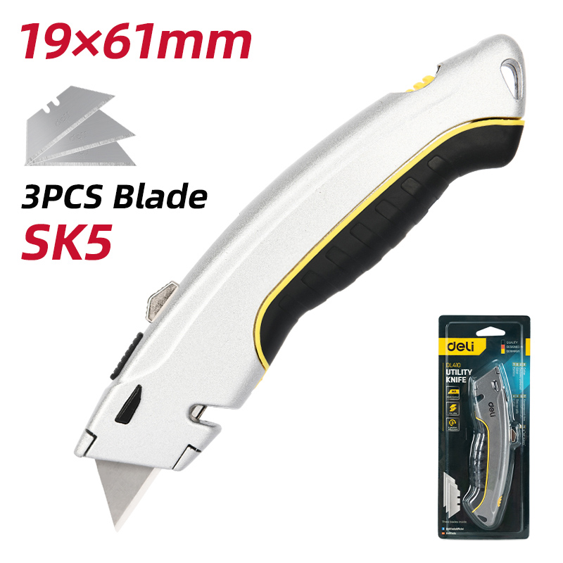 DELI κοπίδι DL410 με ανταλλακτικές λεπίδες, μεταλλικό, 19mm, γκρι