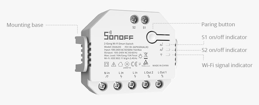 SONOFF smart διακόπτης DUALR3, 2-Gang, WiFi, 15A, λευκός DUALR3