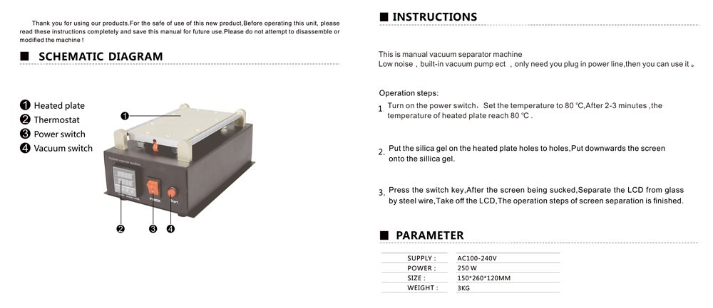 Το BST-B988 είναι ένα μηχάνημα για την αφαίρεση LCD οθονών για κινητά τηλέφωνα. To BST-B988 υιοθετεί την τεχνική του κενού αέρα,μέσω της αντλίας που έχει, κάτι το οποίο το κάνει ποιο εύκολο στην χρήση του από τις απλές συσκευές του εμπορίου καθότι δεν χρησιμοποιεί σφιγκτήρες για την σταθεροποίηση της οθόνης και την αφαίρεση της.