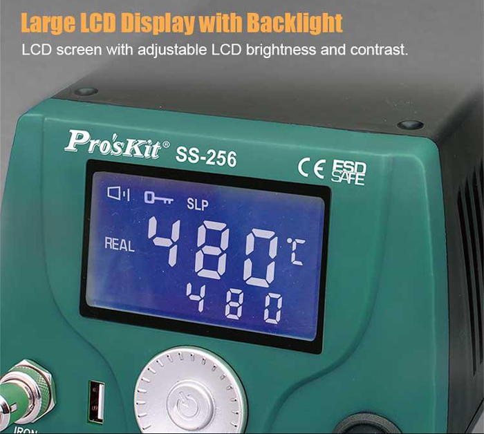 Ο σταθμός συγκόλλησης SS-256B της PROSKIT είναι ένα πρακτικό εργαλείο συγκόλλησης με ισχύ 60W και ρυθμιζόμενη θερμοκρασία από 200 έως 480 °C.