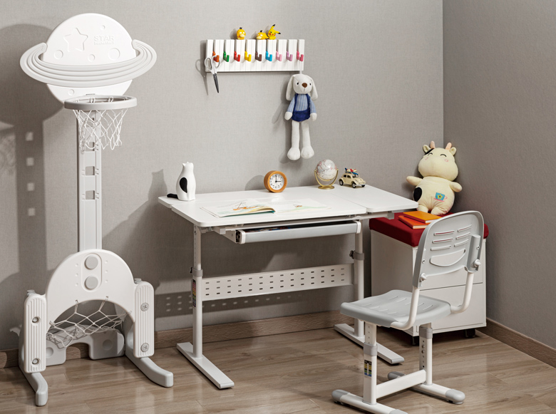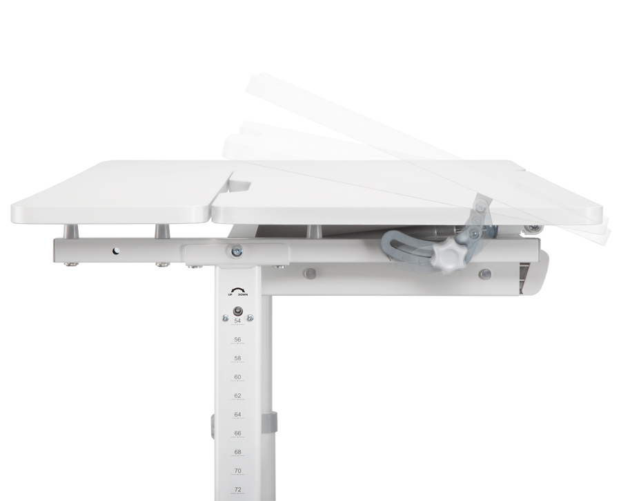 Παιδικό γραφείο από την Brateck με εργονομικό σχεδιασμό που προσφέρει ρυθμιζόμενο ύψος και γωνία κλίση της επιφάνειας εργασίας, μέσω ενός ειδικού μηχανισμού, ο οποίος είναι εύκολος στην χρήση, ακόμη και από το παιδί. Η ρύθμιση της κλίσης της επιφάνειας είναι πολύ σημαντική, καθώς προσφέρει έναν εργονομικό χώρο εργασίας και αποτρέπει τις αντανακλάσεις, ώστε να μην κουράζονται τα μάτια. Επιπλέον, το γραφείο διαθέτει ένα μεγάλο και πολύ πρακτικό συρτάρι με θήκες και κρεμάστρα σακιδίου.