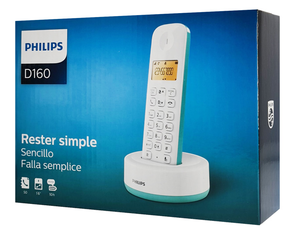 Το ασύρματο τηλέφωνο D160 της Philips συνδυάζει τις έξυπνες και βασικές λειτουργίες με τη φρέσκια και ελκυστική του σχεδίαση. Με την εξαιρετική αναπαραγωγή ήχου, τις έξυπνες λειτουργίες και τη λειτουργία plug & play, θα απολαμβάνετε κάθε συνομιλία με εξαιρετική ευκρίνεια και άνεση.