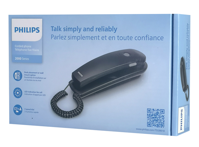 PHILIPS ενσύρματο τηλέφωνο TD2801B/00, επιτραπέζιο ή επιτοίχιο, μαύρο