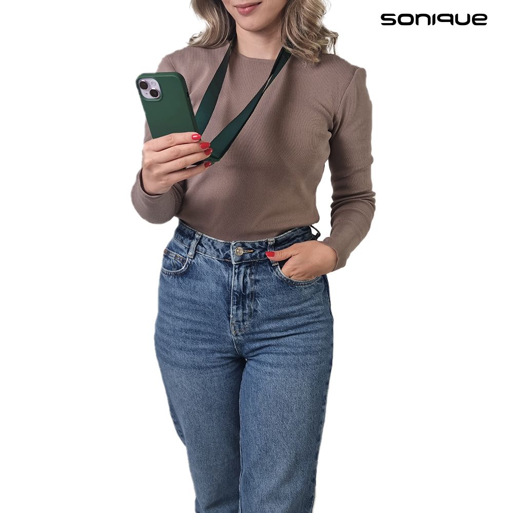 Θήκη Σιλικόνης με Strap CarryHang Sonique Apple iPhone 15 Πράσινο Σκούρο