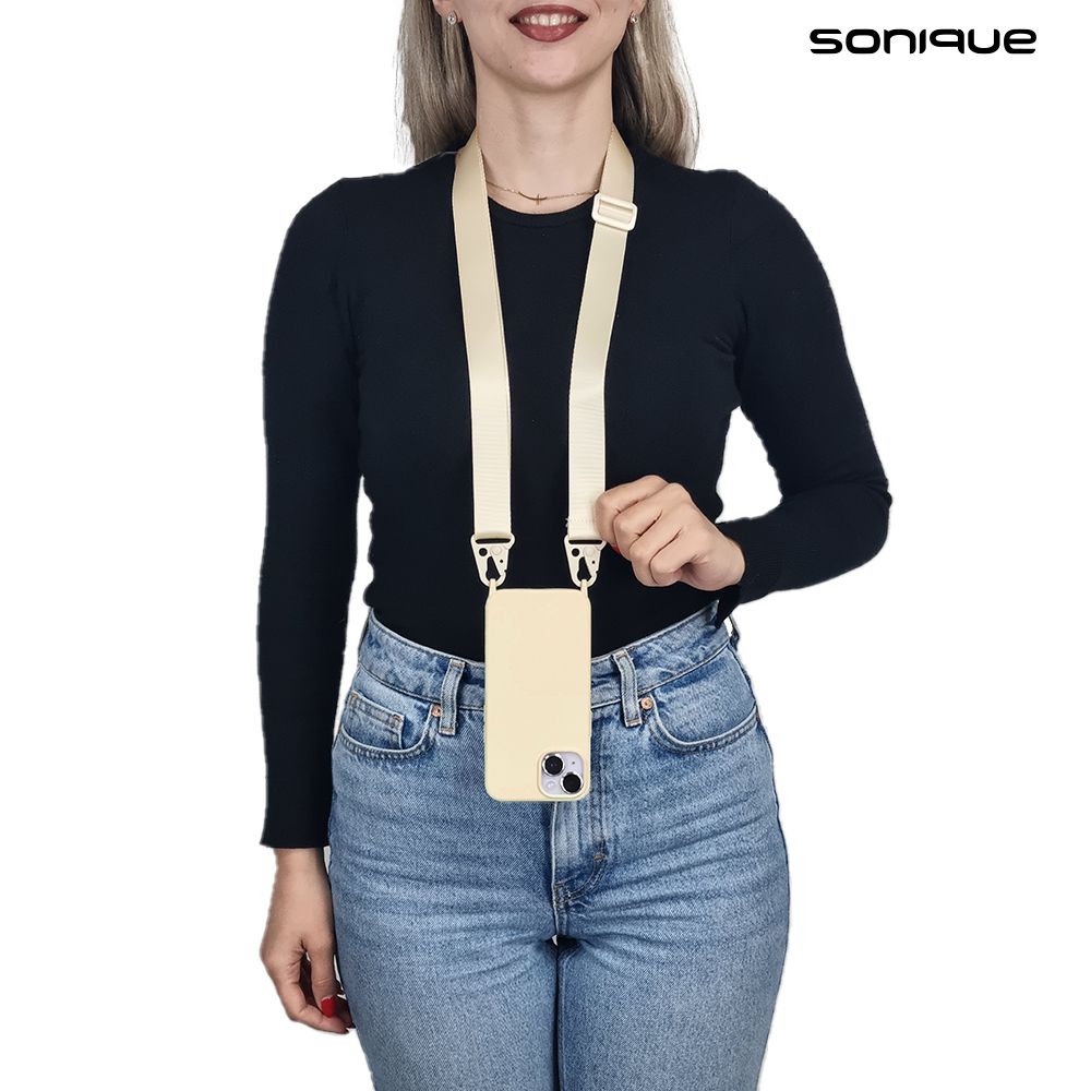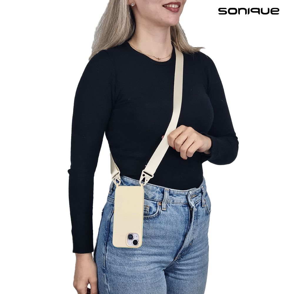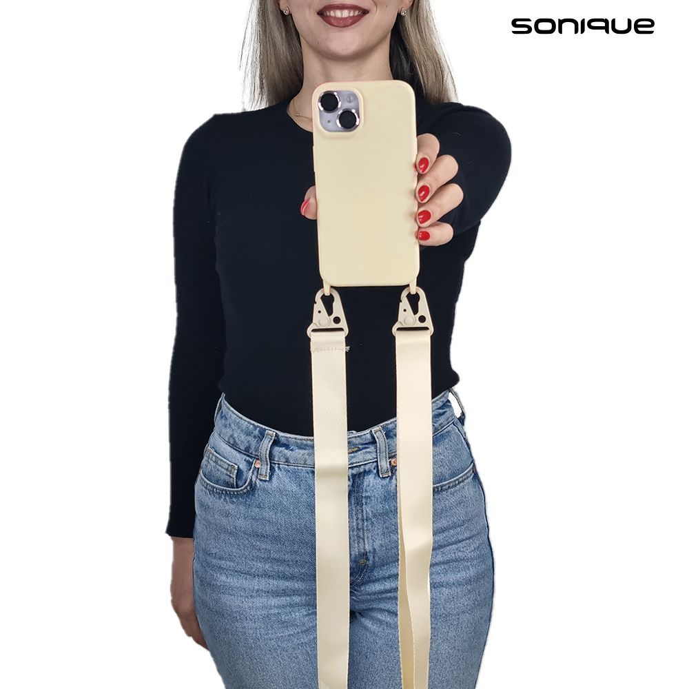 Θήκη Σιλικόνης με Strap CarryHang Sonique Apple iPhone 15 Plus Μπεζ