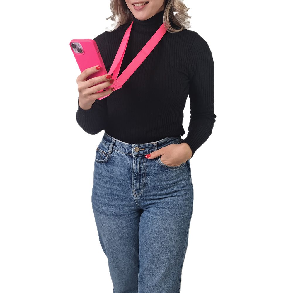 Θήκη Σιλικόνης με Strap CarryHang Sonique Apple iPhone 15 Plus Φουξ