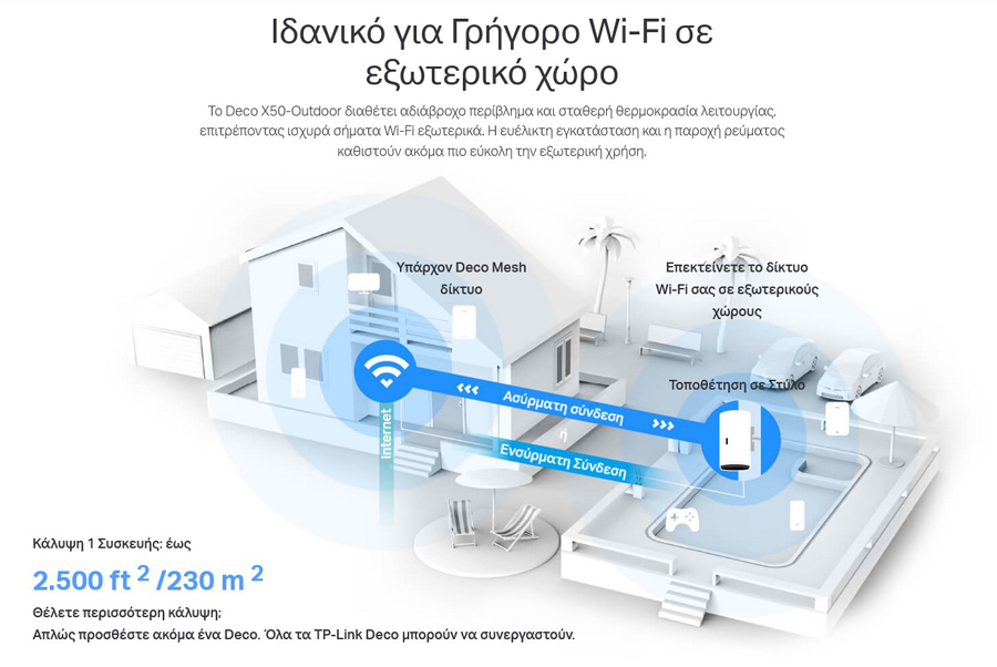 -Συνεργάζεται με όλα τα Decos - Συμβατό με οποιοδήποτε άλλο μοντέλο Deco δημιουργεί ένα Mesh δίκτυο.