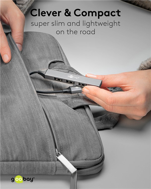 Αυτό το hub της Goobay μπορεί να συνδεθεί με το laptop ή το desktop σας μέσω θύρας USB και να επεκτείνει τις θύρες του με 4x USB θύρες. Διαφορετικές συσκευές USB, όπως εξωτερικοί σκληροί δίσκοι, card readers, ποντίκια κλπ. μπορούν να συνδεθούν μέσω του hub.