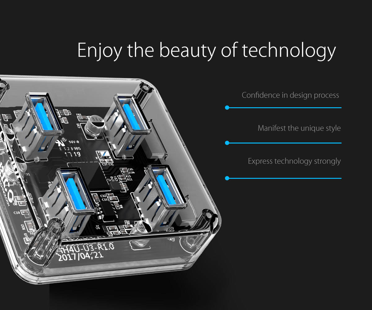 ORICO USB hub MH4U-U3, 4x θυρών, 5Gbps, διάφανο