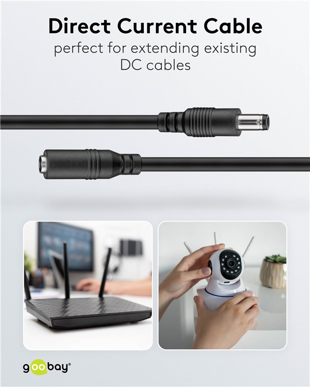 GOOBAY καλώδιο προέκτασης τροφοδοσίας 71400, 5.5x2.1mm, 10m, μαύρο