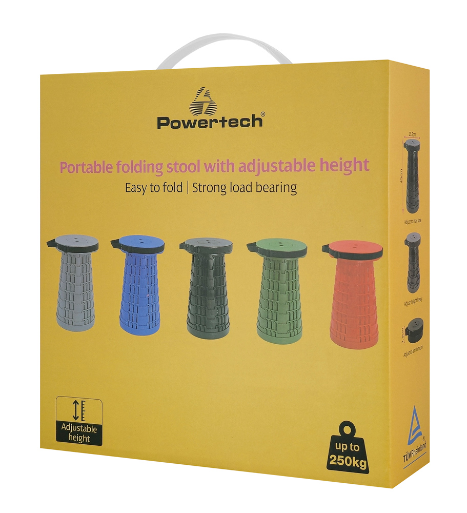 Αποστολή ή Παραλαβή από το κατάστημα σε 1-2 ημέρεςPOWERTECH πτυσσόμενο καρεκλάκι HUH-0234, αντοχή έως 250kg, 25.5x45cm, μπλε HUH-0234