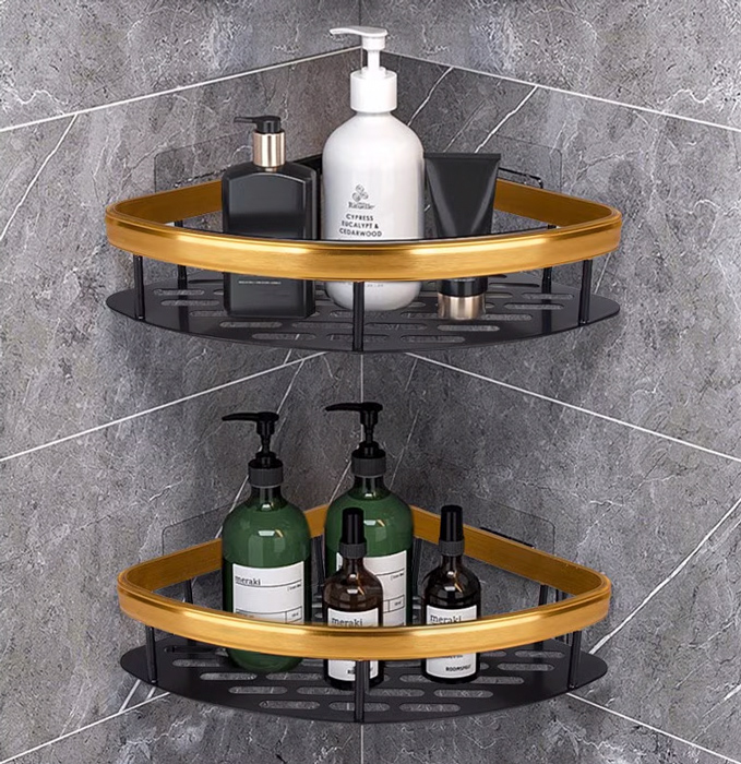 Γωνιακό ράφι τοίχου HOME USE, ιδανικό για την αποθήκευση μικροαντικειμένων στο μπάνιο ή την κουζίνα.