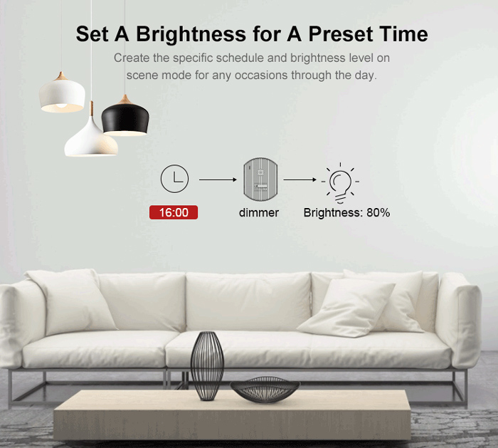 Βελτιώνει το σύστημα φωτισμού του σπιτιού σας με διαφορετικά επίπεδα φωτεινότητας. Με το smart dimmer μπορείτε να ενεργοποιήσετε/απενεργοποιήσετε τις λάμπες μέσω τηλεχειριστηρίου RM433, της εφαρμογής eWeLink, της Alexa ή του Google Home.
