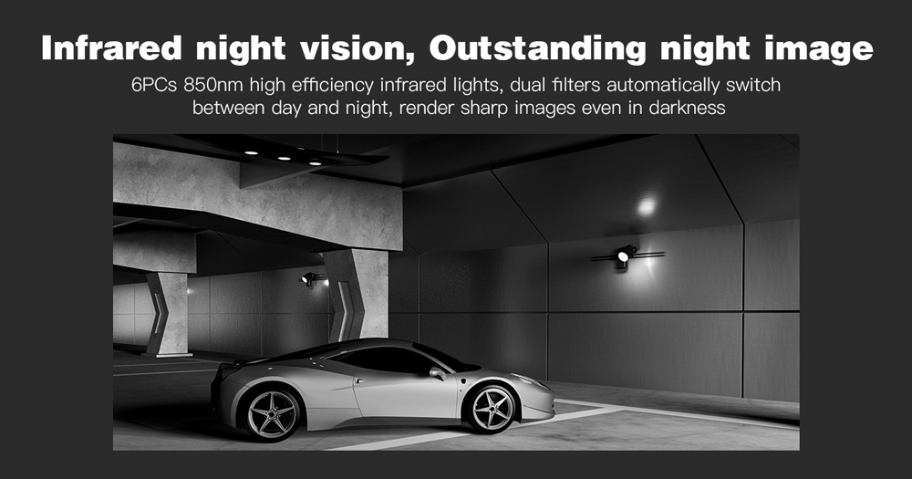 Night vision: Dual Filter,IR-Cut, 6pcs 850nm patch IR LED IR irradiation distance: 5~10m
