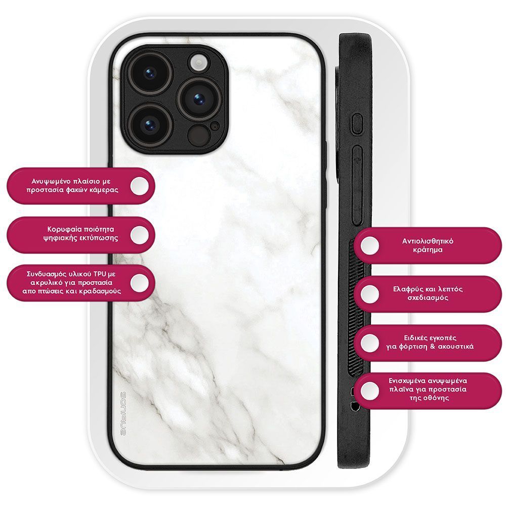 Η Θήκη Sonique Marble προσφέρει μοναδική κομψότητα και ασφάλεια για το κινητό σας. Το εκλεπτυσμένο σχέδιο μαρμάρου σε συνδυασμό με την ψηφιακή εκτύπωση υψηλής ποιότητας δημιουργεί ένα εντυπωσιακό αποτέλεσμα που δεν ξεθωριάζει με την πάροδο του χρόνου. Κατασκευασμένη από ανθεκτική σιλικόνη με ακρυλικό πίσω μέρος, η θήκη αυτή προστατεύει αποτελεσματικά τη συσκευή σας από καθημερινές φθορές και γρατσουνιές, ενώ παράλληλα διατηρεί την πολυτελή της εμφάνιση.Επιπλέον, η θήκη διαθέτει αντιολισθητικό κράτημα, προσφέροντας ασφαλή αίσθηση στο χέρι και μειώνοντας τον κίνδυνο ατυχημάτων από γλιστρήματα. Διατίθεται σε ποικιλία σχεδίων και χρωμάτων, για να βρείτε το ιδανικό στυλ που ταιριάζει με την προσωπικότητά σας. Απογειώστε την εμφάνιση και την προστασία του κινητού σας με την Sonique Marble, που συνδυάζει μοντέρνο design και πρακτικότητα.