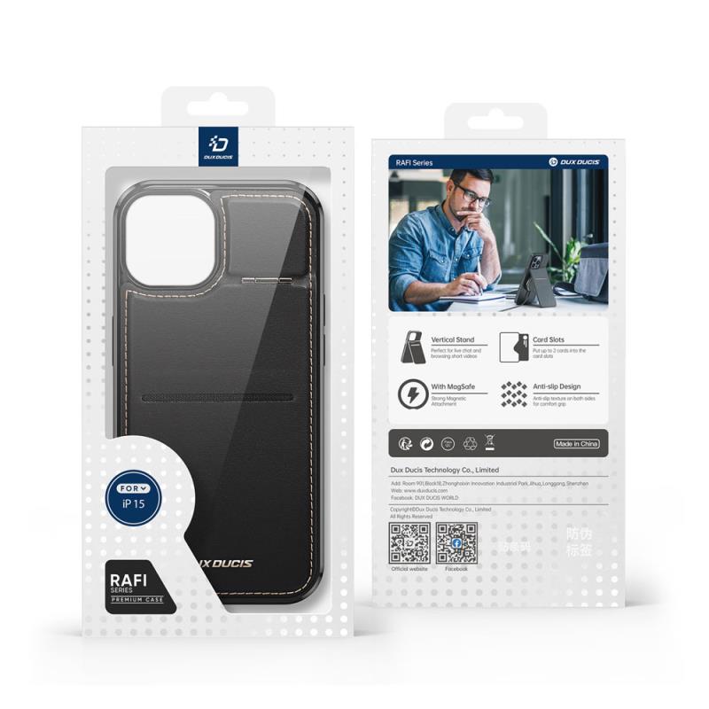 Θήκη Δερμάτινη Dux Ducis Rafi Mag 3 σε 1 MagSafe RFID Blocker Apple iPhone 15 με Stand Μαύρο