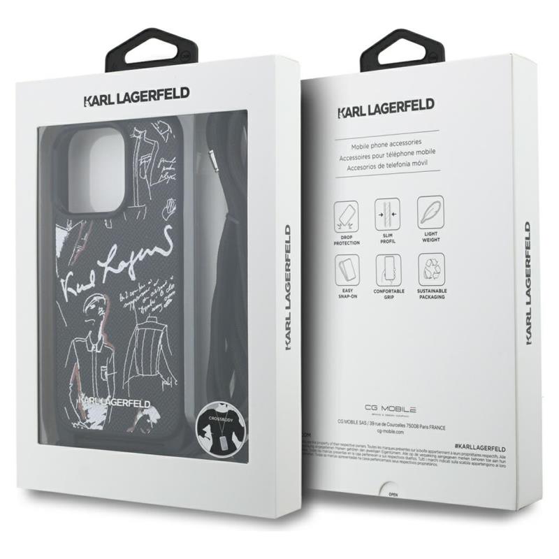 Θήκη Δερμάτινη Karl Lagerfeld Magsafe Apple iPhone 16 Pro Saffiano Crossbody Μαύρο